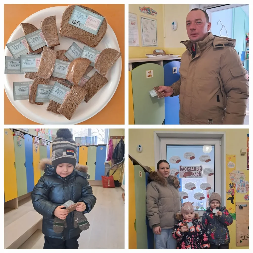 Воспитатель Гусева В.А. организовала трогательную акцию «Блокадный хлеб», призванную донести до детей и их родителей тяготы и лишения блокадного времени. Участники смогли прочувствовать ценность даже малого куска хлеба, ставшего символом выживания и стойкости ленинградцев.