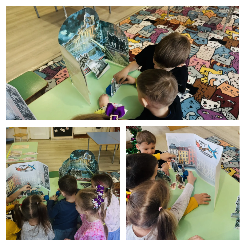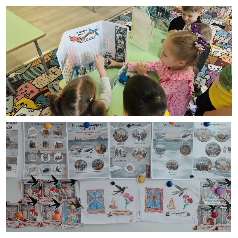 В средней «Б» группе под руководством воспитателя Андреевой Е.Ю. дети создали впечатляющую диораму «Блокадный Ленинград». Эта работа позволила ребятам визуально представить жизнь в осажденном городе.