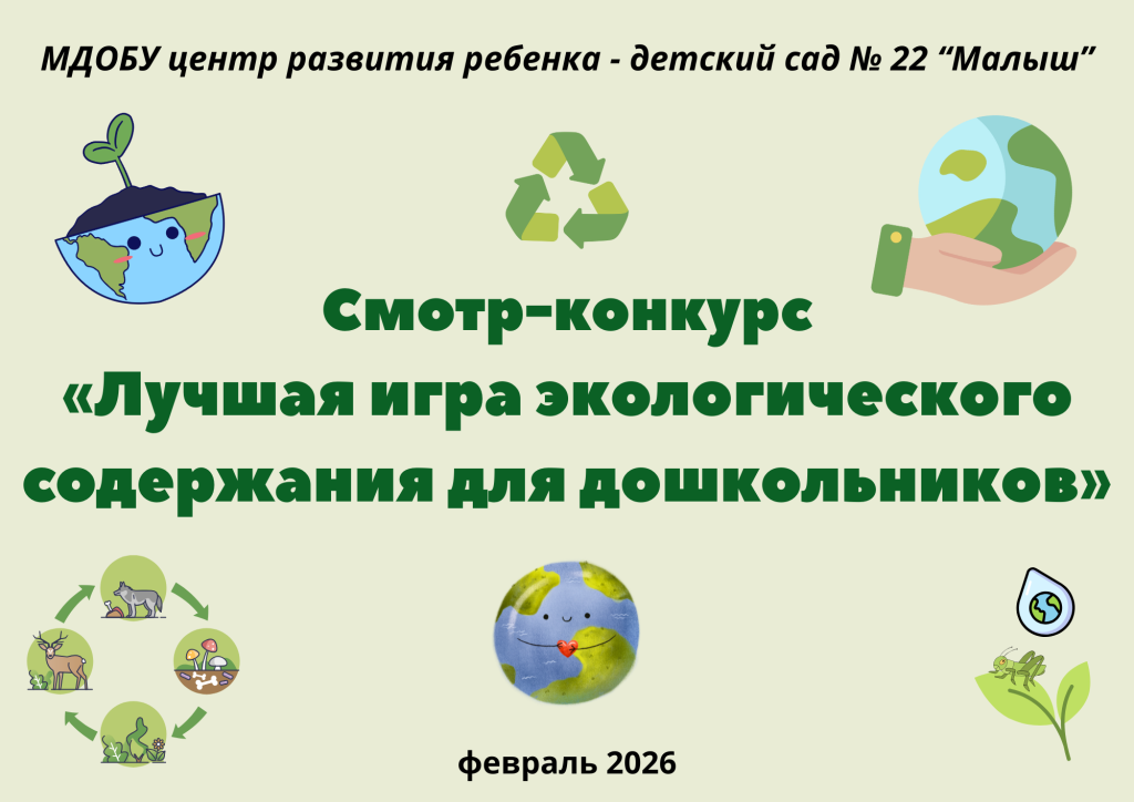В период с 09.02 по 11.02.2026 в МДОБУ №22 «Малыш» прошел смотр-конкурс профессионального мастерства «Лучшая игра экологического содержания для дошкольников».